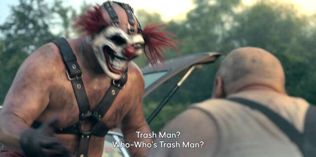Sweet Tooth learns about Trash Man, who is a more famous murderer than he is. Trash Man is a character in Twisted Metal 4 who drives a garbage truck.