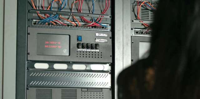 Calypso broadcasts on all electronic screen devices in the Divided States of America to announce his Twisted Metal tournament. If you look closely, the screens glitch using the same color pattern as when the computer bug derailed all the world’s technology, as seen during a flashback in Season 1, Episode 3. The implication is that Calypso was the one who unleashed the computer bug, setting up the events for the series.