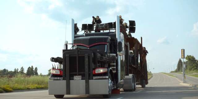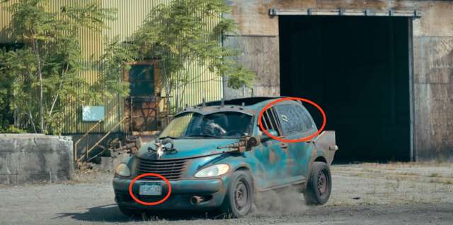 When John Doe first encounters the Dolls on the road, they’re riding, Mad Max style, on a massive semi-truck. The license plate is STNSPWN, which means this semi-truck is Darkside, which has the same license plate as it did in the first Twisted Metal game.