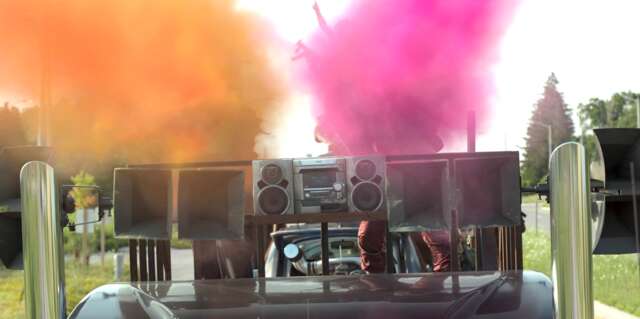 The prom DJ is Club Kid, a contestant from Twisted Metal 3. He drives a micro car with a smiley face paint job.