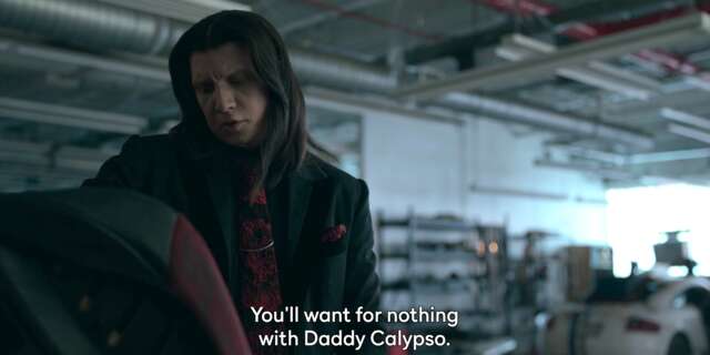So here’s my crazy show theory: Dollface’s real name is Krista, right? And since Calypso is the one who resurrects Krista into Minion, that sort of makes Krista his “daughter,” in a weird sort of way? My prediction is that Dollface will kill Calypso via explosive murder/suicide in Season 3, creating the ultimate meta reference.