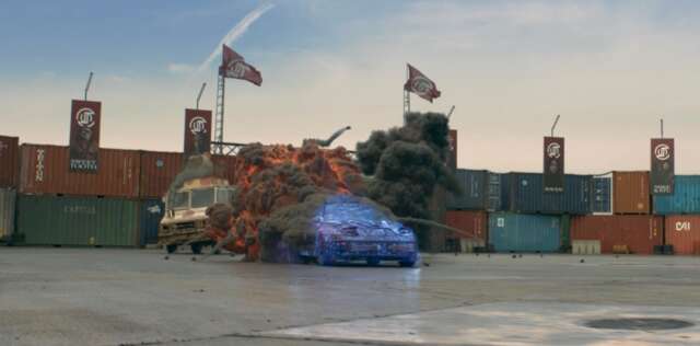 The final battle’s location is a circular arena surrounded by cargo shipping containers and a cheering crowd, a clear homage to the qualifying round in the first Twisted Metal game.
