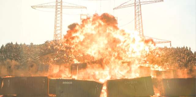 Calypso announces “Warehouse District Warfare” to the 11 competitors, who must search for eight passes in a maze of shipping containers. This is also the name of the second level in the original Twisted Metal game, in which the player must defeat three other drivers in order to advance