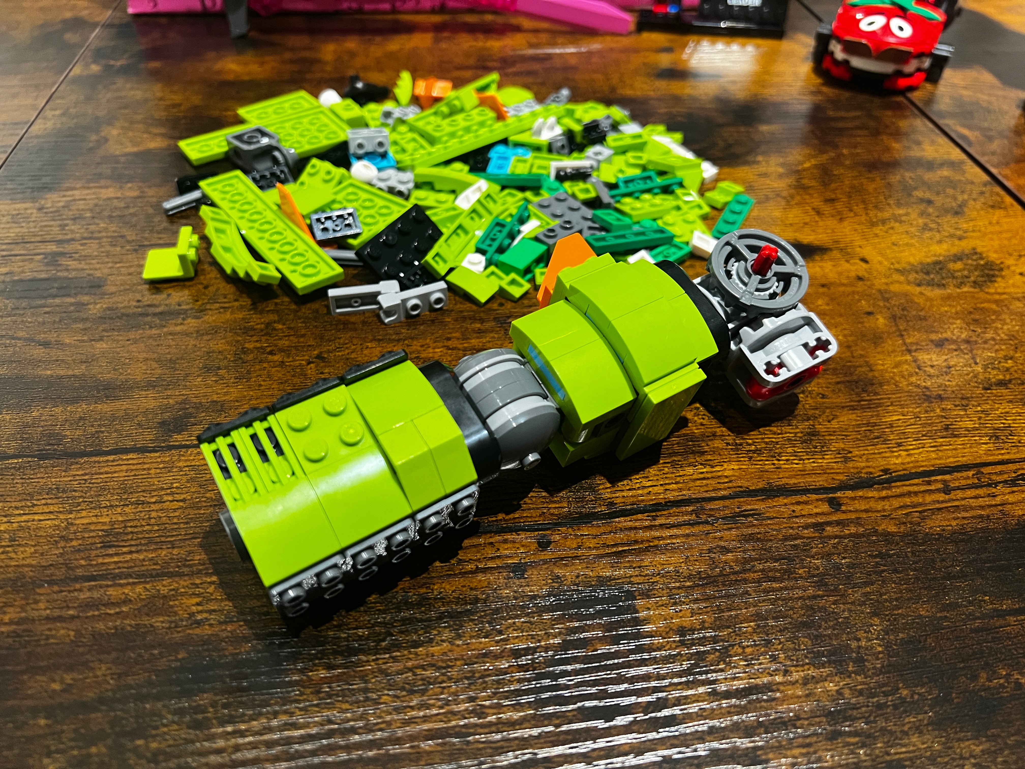 I’m not educated on the lore behind the Mecha Team Leader’s design, but I think I can speak for everyone when I comment on how ridiculous (and ridiculously awesome) this set is. One leg is made up of what looks like ice cream, with a cherry foot, while the other foot is a literal cheeseburger. I don’t get it, and I don’t care; this thing rules. Building the each body part was extremely satisfying, getting to see how in-depth the attachment techniques are. Every limb is movable and posable except for the knees, which unfortunately don’t bend. But you can still articulate the mech’s arms, hands, and fingers to put it up on your shelf however you want.