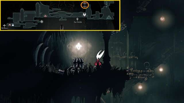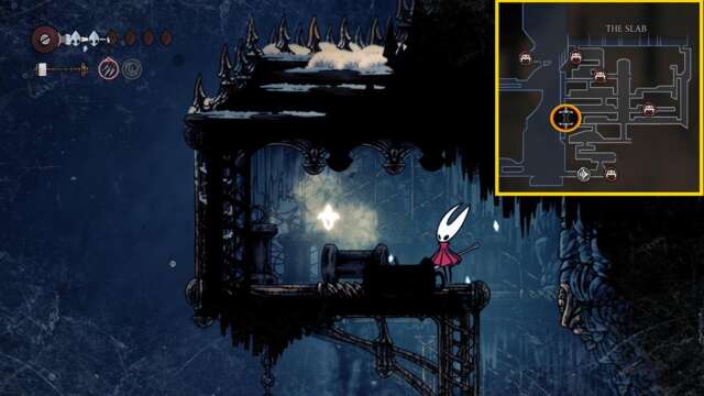 We’ve talked a bit about The Slab in our Faydown Cloak/Double Jump guide. Basically, if you get captured by a jailer-type enemy, you’ll find yourself in this prison level. Progress normally until you reacquire Hornet’s gear and the Heretic Key. Then, check one of the outer portions along the left-hand side to find this item. Don’t dawdle for too long because Hornet can also freeze to death.