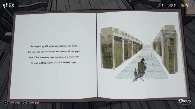 One of the pages in A New Clue shows a person standing in an empty hallway. The floor looks eerily similar to the manor’s grid-like construction, too. Behind the person, you’ll see a hammer and a vase.