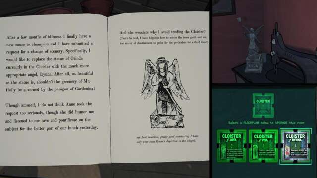 - Joya, Veia, and Rynna (again): If you found an Upgrade Disk, it can randomly pick the Cloister. It should show illustrations of the deities.
