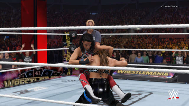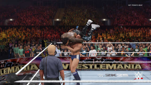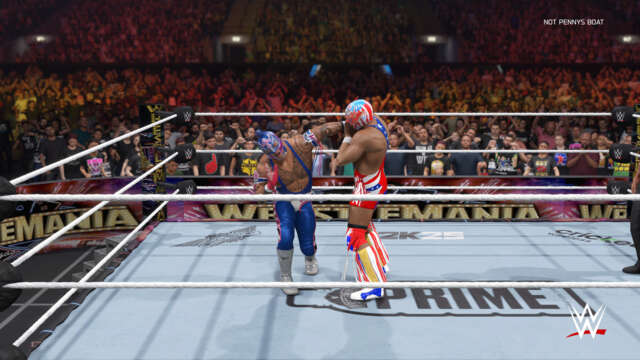 While two of the competitors aren’t officially on the roster yet, that was no issue; given the game’s robust user-generated content suite, I was able to download the lucha superstars Penta and El Grande Americano thanks to the WWE 2K community. I also hosted every match in a user-made WrestleMania 41 arena to give it the right vibe before the dev team likely adds its own official version soon.
