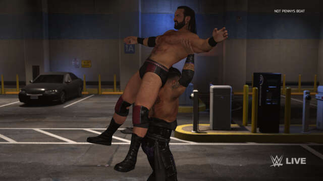 I don’t know if this match will make its way into the backstage areas, but I decided to set it in the parking lot in the game. I can definitely see someone taking a basket of poker chips to the head, or maybe McIntyre eats a Razor’s Edge through a blackjack table. This should be a fun one, like the sim was.
