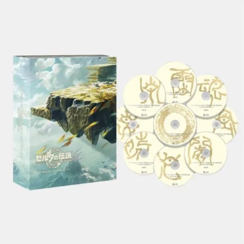 Tears of the Kingdom’s approximately 11-hour soundtrack is spread across 344 tracks on nine discs. Each disc has unique The Legend of Zelda iconography. All of the discs are stored in a large digipak featuring Tears of the Kingdom key art. A booklet with the track lists is included, too.